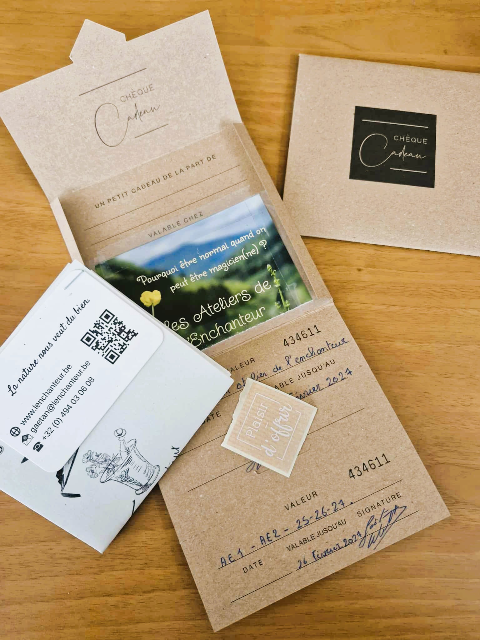 Dans un écrin carton y sera placé le « bon » sur papier original avec message personnalisé pour l’occasion.